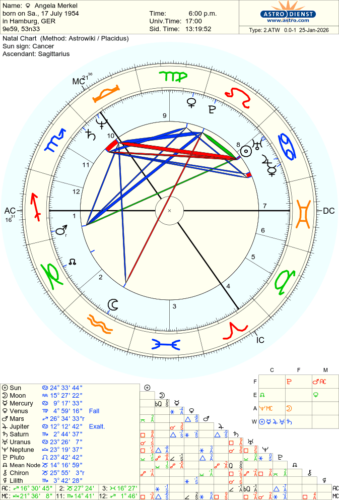 | Merkel | Stabilisierung, Ausgleich | Krebs, Jungfrau, Saturn |